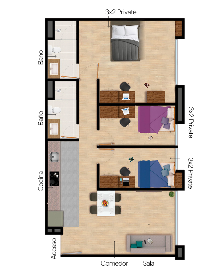 ¡3 nunca es multitud! Atrévete a compartir espacio y disfruta la vida universitaria al 100%.