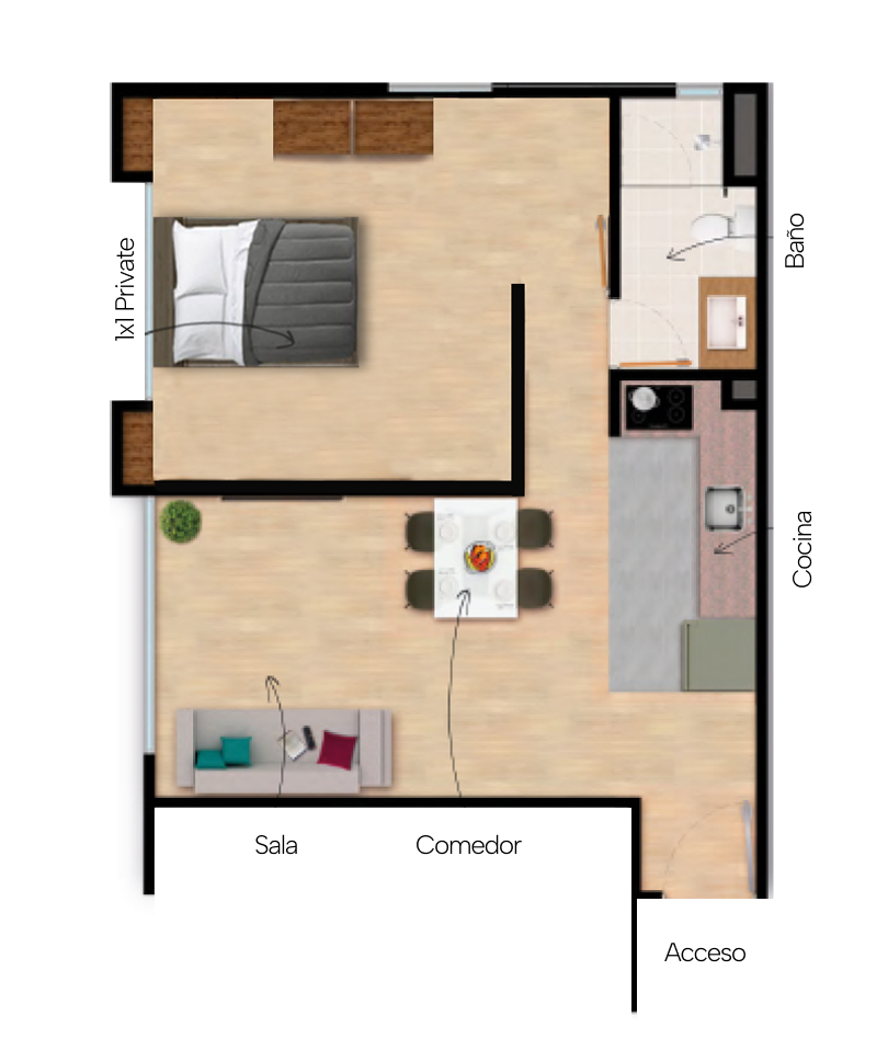 El Apartamento 1X1 es perfecto para ti si prefieres tu propio espacio.